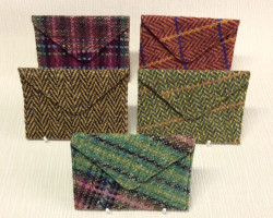 Every product I sell is handmade personally by me in my workshop in Billericay Essex. I use a variety of carefully selected natural fabrics including silk, wool and some vintage. Quite often I use 100% wool tweeds woven in Wales by my sister. Her tweed is unique, beautiful, soft, hardwearing and lovely to work with.